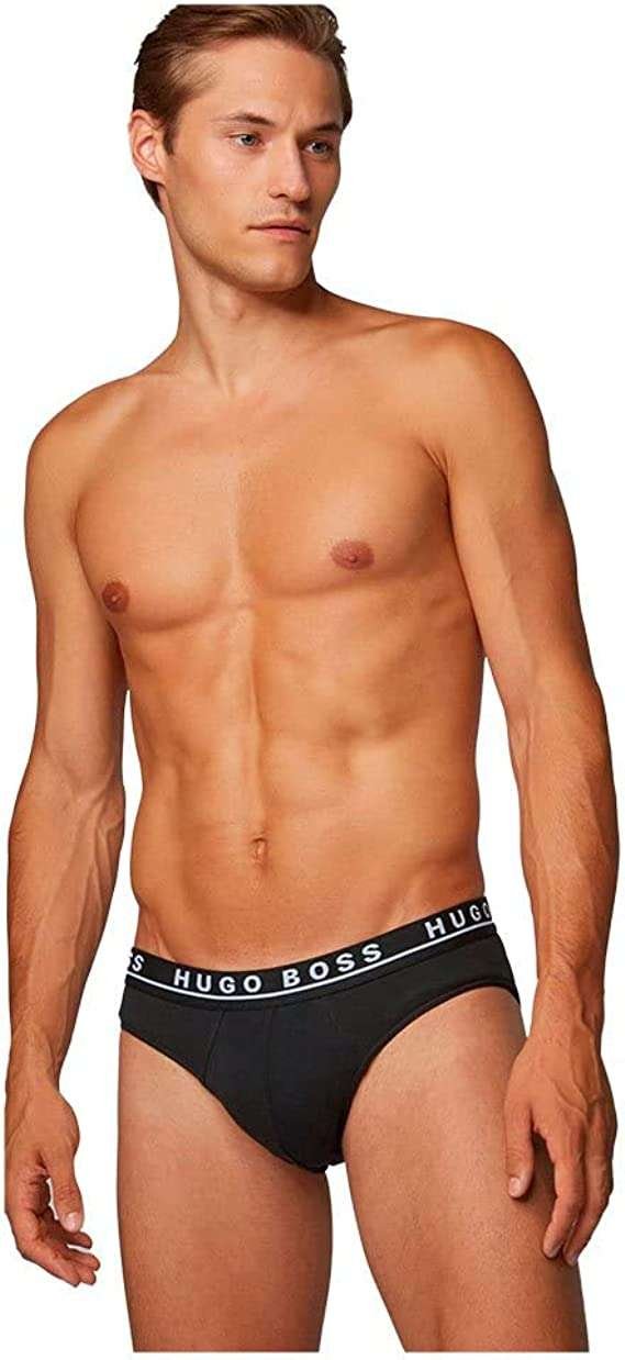 BOSS Mens Brief 3P CO/EL Three-Pack of Stretch-Cotton Briefs with Logo waistbands
