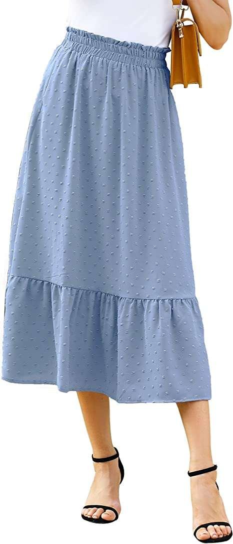 Stylish Design: swiss dot, bohemian style, high waist, elastic waistband, two pockets, A-line, ruffle maxi skrit, midi skrit.long flowy skirts above ankle length, High-elastic pleated waist and elegant hem for a variety of body.