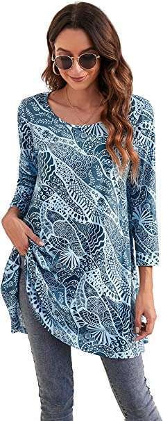 Enmain Womens Casual Tunic Top 3/4 Long Sleeve Longline Blouse Ladies Swing Tunic Top Loose Blouse T Shirt Round Neck Stretch Comfortable Holiday