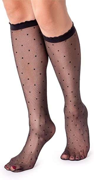 LORES Womens Sheer Knee High Pop Socks Fancy Patterned Soft-Top Fun Long