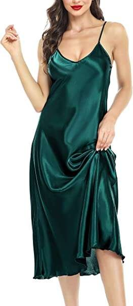 Lovasy Satin Nightdress for Women UK Long Negligees Strap Chemise Silk Nighties for Women V Neck Full Slips Sleepwear Nightwear
