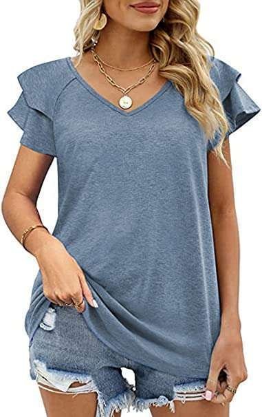 SURVEAL Women Tops V Neck Ruffle Sleeve Summer Casual T Shirts Loose fit Ladies Tops Blouses