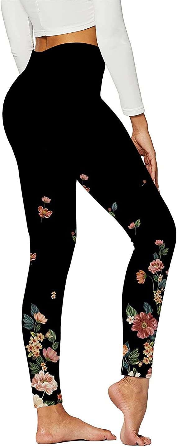 Womens Seamless High Waisted Gym Leggings Unique Design Power Stretch Yoga Pants Running Workout Leggings, Buttery Soft Funky Womens Flower Printed Hip Lifting Trousers Sale Clearance